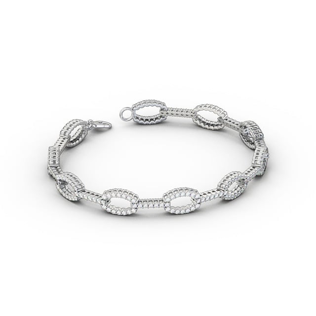 Carmela designer diamond bracelet in 9K White Gold. Stunning and glamorous bracelet with a collection of round shaped diamonds in an oval and linked design. The bracelet is a standard 18cm (7 Inch) in length and we also offer a free design service for any customised changes that you may require.